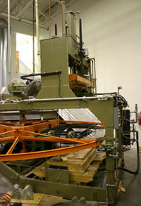 After a short form cycle, a burst of reverse air pressure is actuated from the vacuum side of the mold as the form tooling opens, commonly referred to as air-eject, to break the vacuum and assist the formed parts off the mold. The sheet containing the formed parts then indexes into a trim station, where cuts the parts from the remaining sheet web. After that parts are trimmed on 5 axis routers using vacuum fixtures. The sheet web remaining after the formed parts are trimmed is collected and sent for recycling.